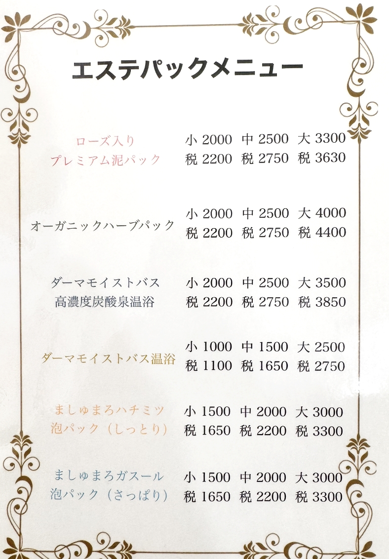 エステパックメニュー